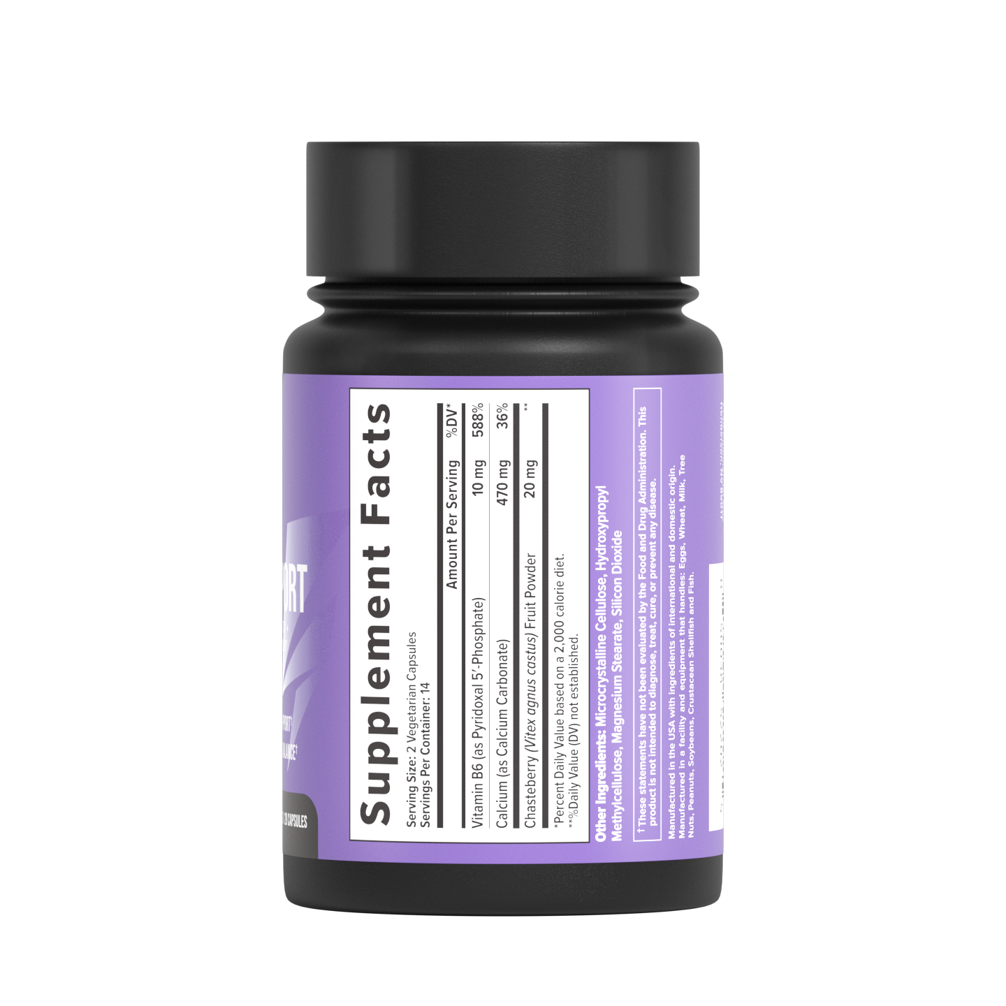 There are only 3 ingredients in PMS Support, and we’ve selected the top ingredients known to help combat symptoms related to PMS: Chasteberry, Calcium and Vitamin B6.*