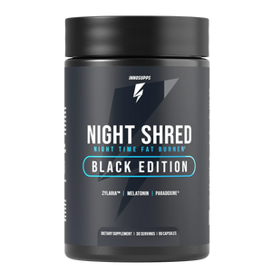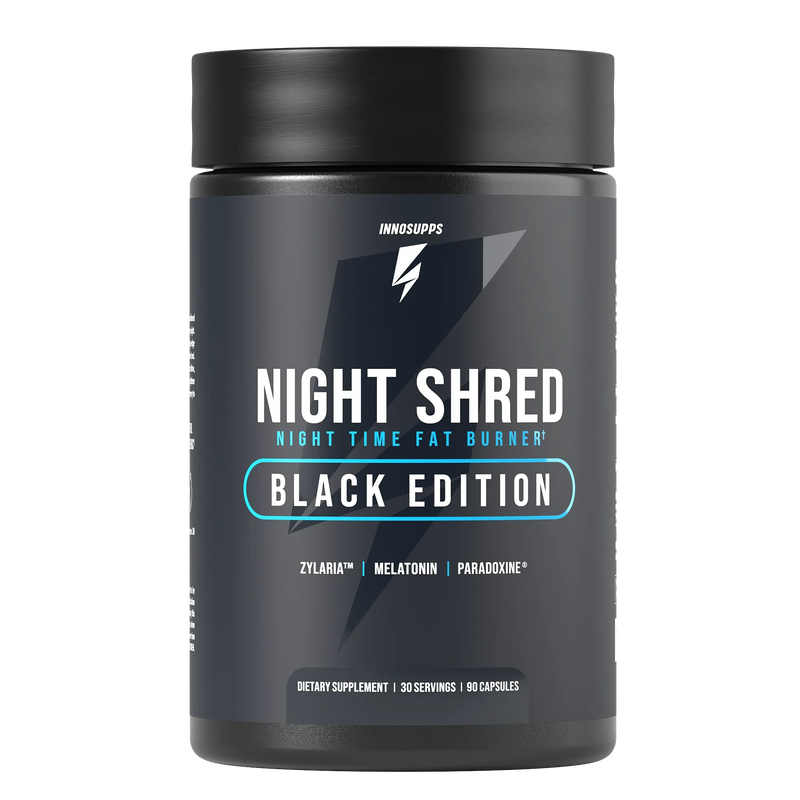 NIGHT SHRED BLACK Can I take this product combined with Inno Shred™ or Volcarn 2000? Inno Shred™, Volcarn 2000 and Night Shred™ can be taken in the same day together, but not at the same time! We recommend taking Night Shred™ six to eight hours after your last dose of Inno Shred™ and Volcarn 2000. Will Night Shred™ show up on a drug test for athletes? While our products do not contain PEDs, we recommend checking over the label with your sports regulating committee before taking any supplement. Can I take this with my thyroid/blood pressure/prescription medication? Please review the label with your physician before making a purchase. -