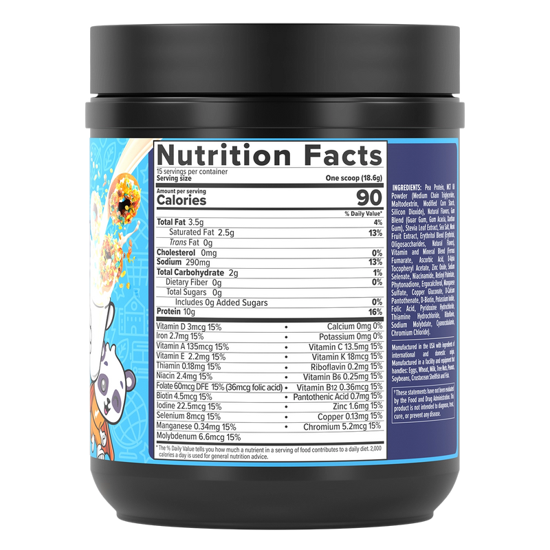 You can enjoy Plant-Powered Protein for Kids Kids in many different ways! You can mix a serving with 6-8 oz of water or your preferred beverage, blend a serving with your favorite smoothie, or even replace ¼ to ½ cup of flour with a serving in your favorite baking recipe.*