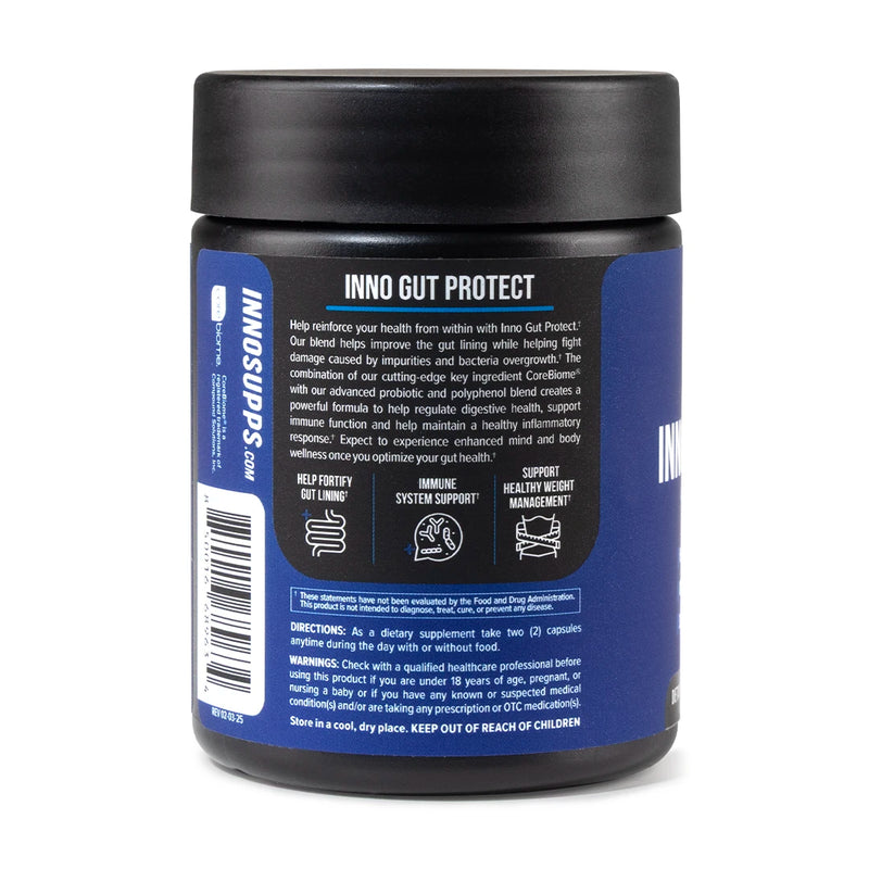 Inno Gut Protect is a postbiotic and works to strengthen the gut lining. A fortified gut lining helps maintain the benefits you experience from prebiotics and probiotics. Research also suggests postbiotics may help boost your immune system, regulate inflammatory responses and support weight loss and maintenance.*