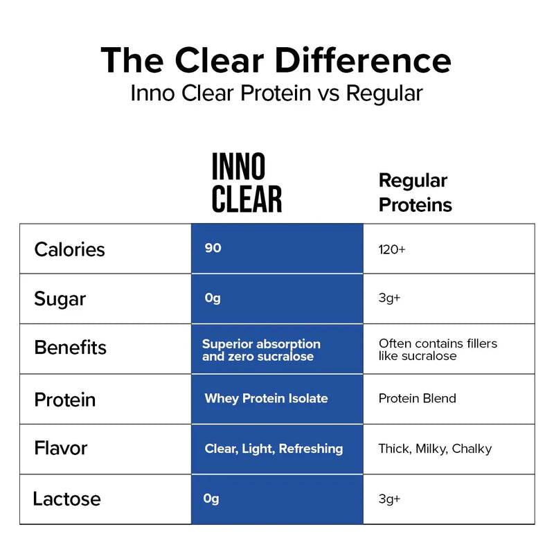 Inno Clear comes in light, fruity, refreshing flavors with no milky aftertaste and no chalky texture; just smooth, crisp hydration and protein in one.