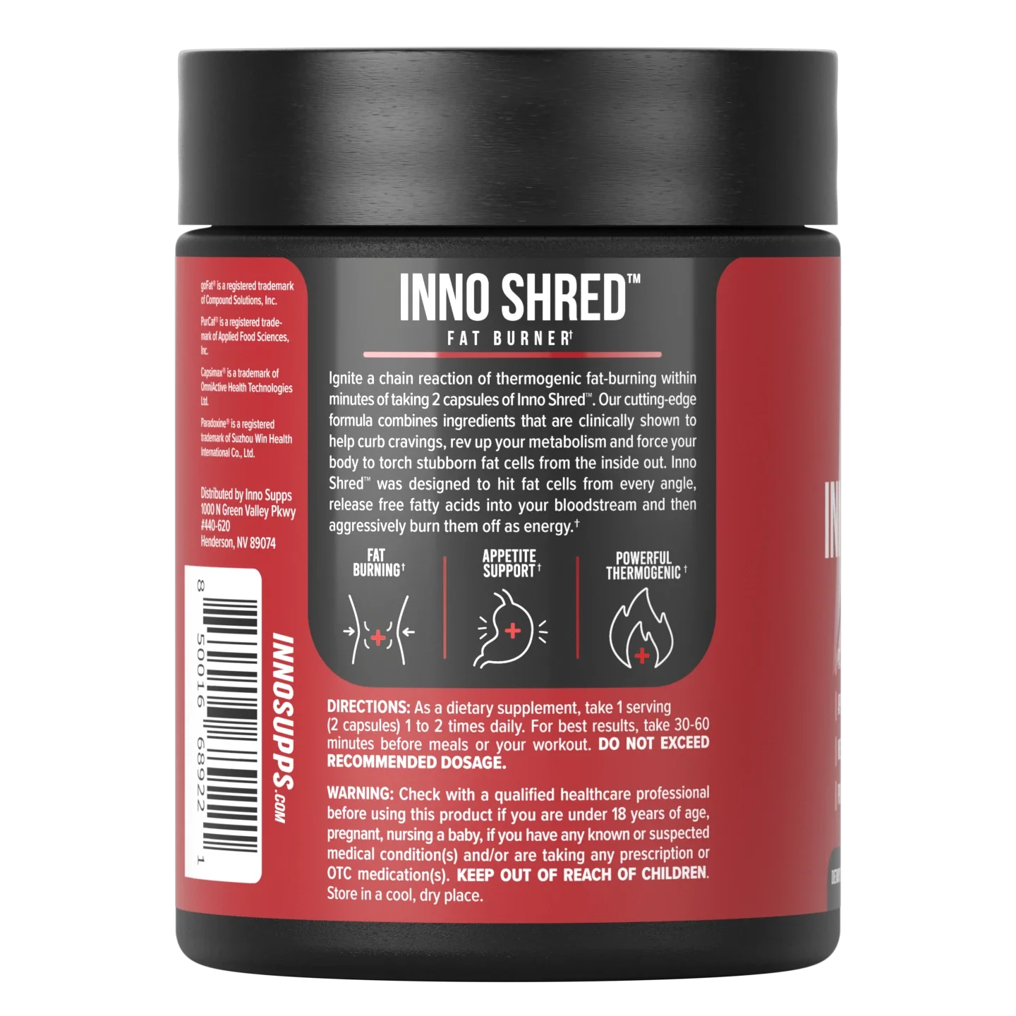 Inno Shred hits the fat burning process from all three angles and is incredibly effective at targeting stubborn body fat and burning it off for energy. You will feel and see a difference in a matter of days.*