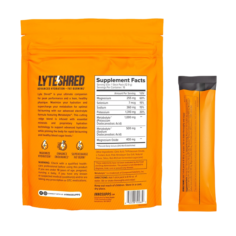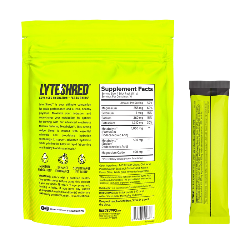 Revolutionize your metabolism with Metabolyte™, your secret weapon for unlocking metabolic flexibility! This cutting-edge ingredient switches your body into fat-burning mode, utilizing fatty acids for sustained energy throughout the day. Unlike other sugary sports drinks, Lyte Shred™ not only hyper-hydrates but also helps fuel your goals with zero sugar. Enjoy unwavering energy levels whether you’re crushing it at the gym or conquering your daily hustle.*