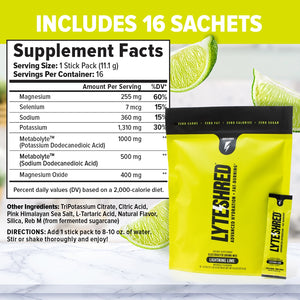 Lyte Shred™ is a zero-sugar electrolyte mix, with everything you need and nothing you don't. Our ratio of sodium, potassium, magnesium + Metabolyte™ delivers a truly meaningful dose of electrolytes without the sugar, fillers, or artificial ingredients found in other “sports drinks.” Plus, Metabolyte™ found in Lyte Shred™ helps support metabolism for accelerated fat-burning.