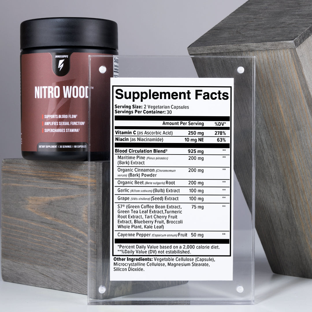 Nitro Wood has nature-based ingredients that are research based and shown to improve blood flow and circulation throughout the body by promoting your body’s own natural production of nitric oxide.*