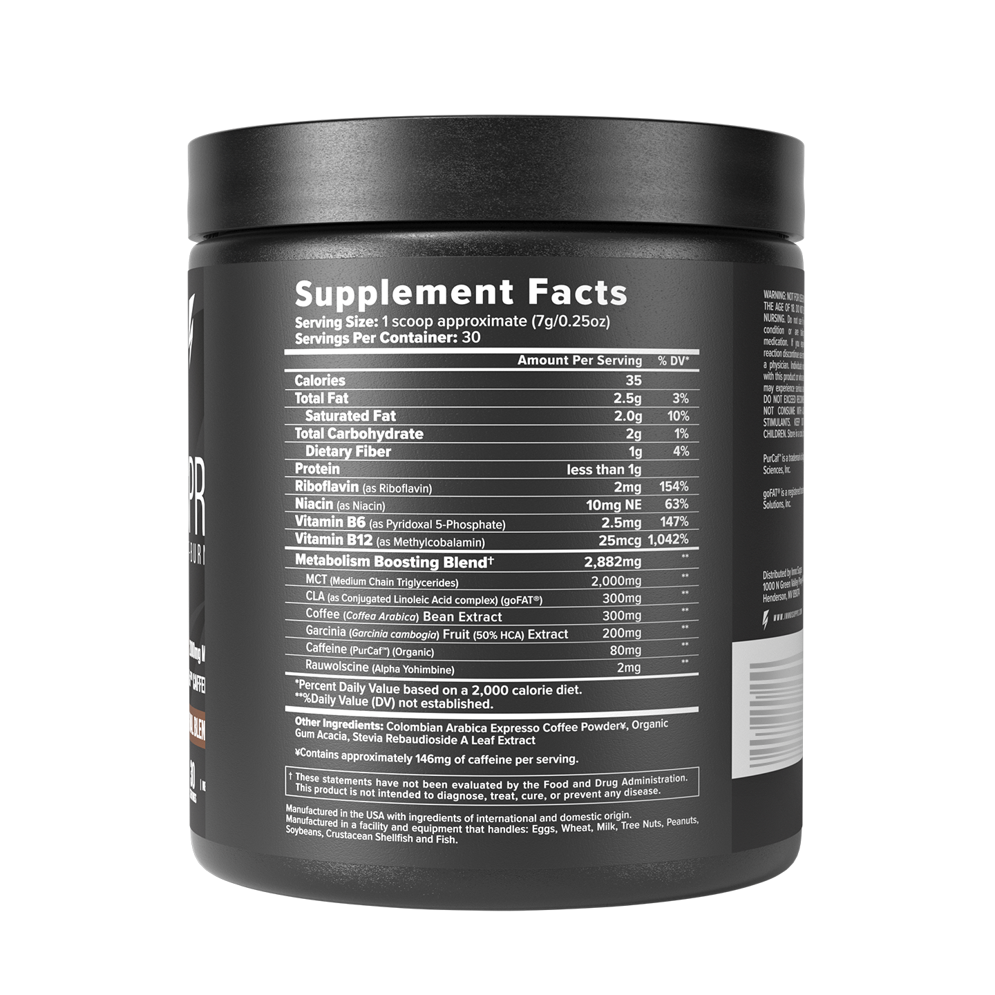 MCT OIL + CLA + GARCINIA FRUIT EXTRACT + ORGANIC CAFFEINE + ALPHA YOHIMBINE- Reduces Mid-Day Food Cravings Blocks absorption of carbs, curbs your appetite, keeps you fuller for longer.