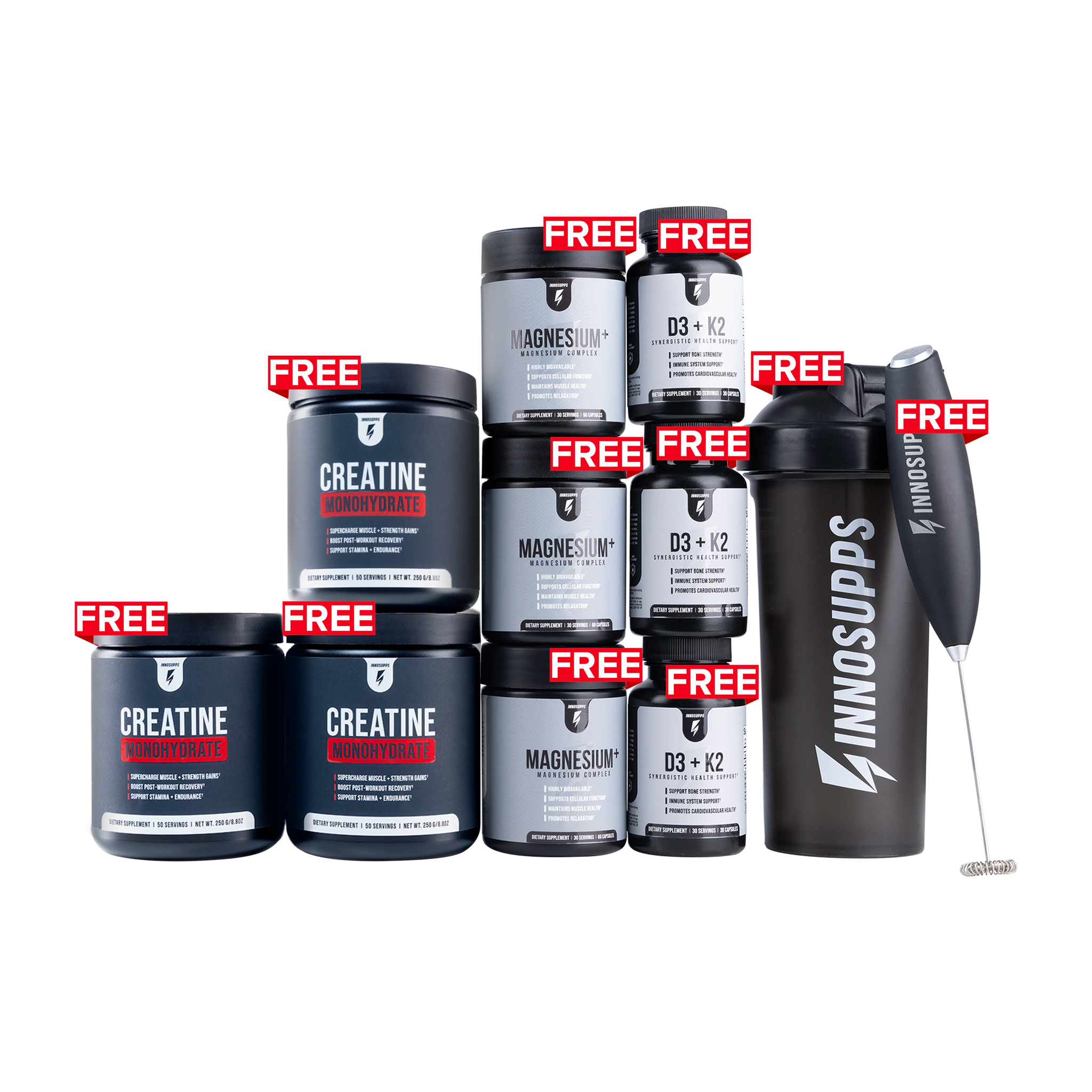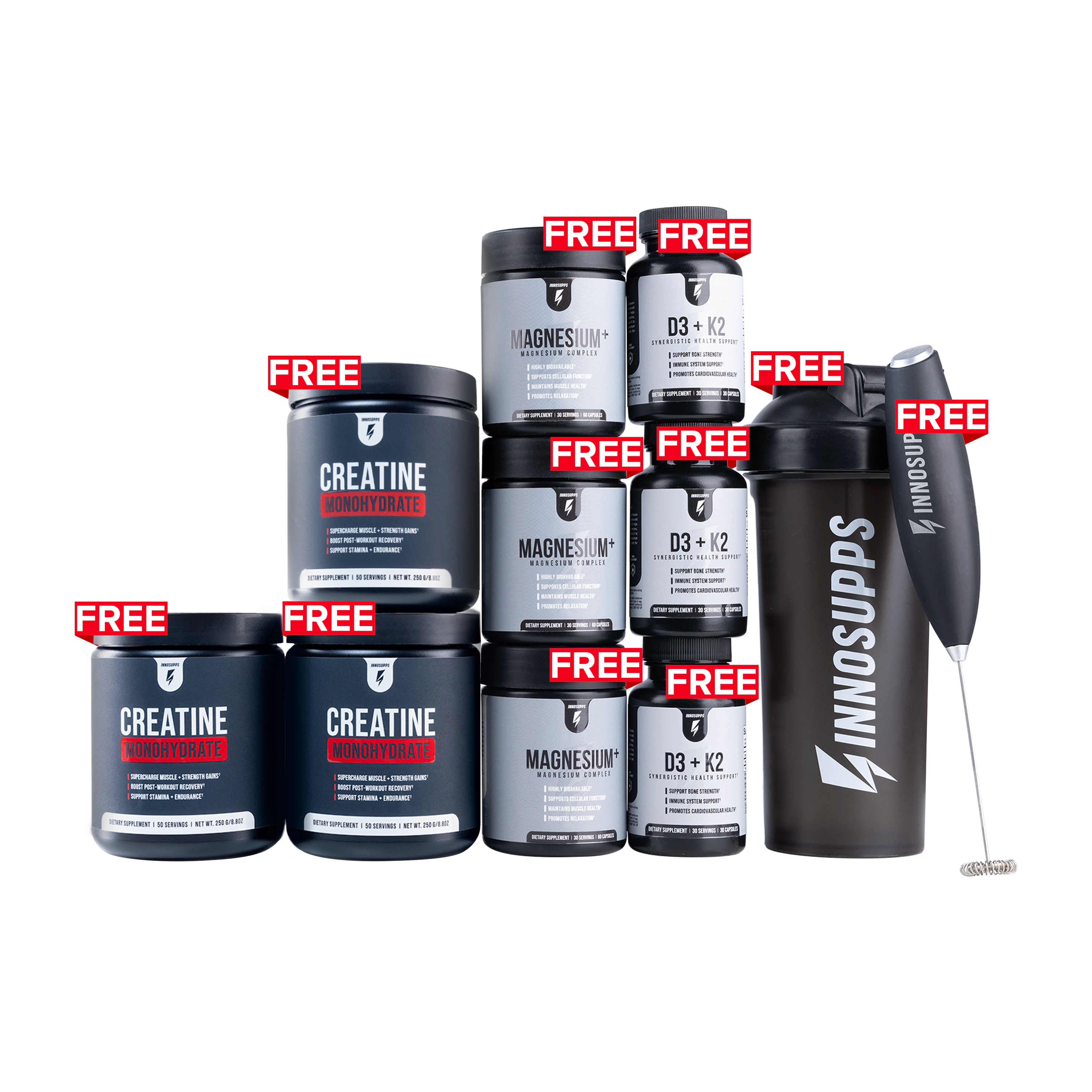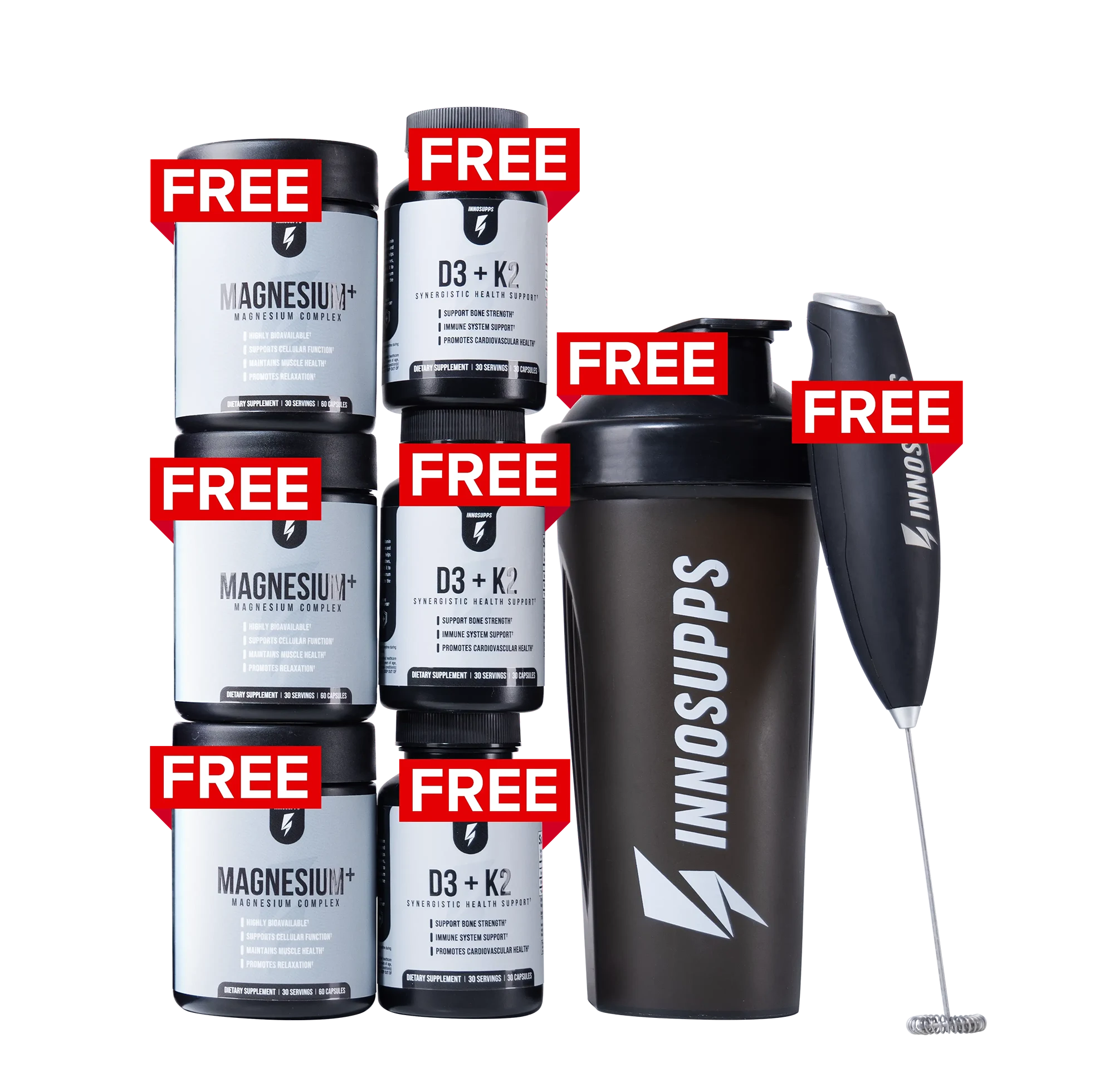 3 Magnesium+, 3 D3 + K2, 3 Creatine, Shaker & Frother Special Offer