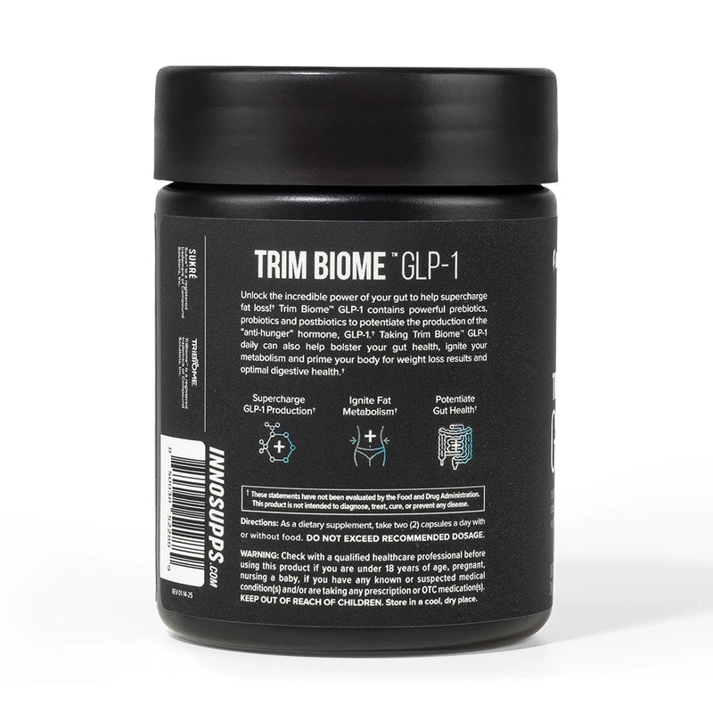 Trim Biome™ GLP-1 includes powerful ingredients such as Akkermansia, TriBiome™ and Sukré® stimulate your body to rapidly increase the production of GLP-1—a powerful weight loss hormone that helps curb hunger while supporting improved digestion.*