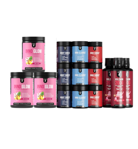 INNO GLOW Who should use Inno Glow? We recommend Inno Glow Fat-Burning Collagen Complex to anyone - male or female - looking to reverse signs of aging, support healthy hair, nails and joints, enhance digestion and gut health all while torching stubborn body fat.* How can Inno Glow help? There are tremendous benefits to taking collagen, including enhancing skin health, relieving joint pain, preventing bone loss, boosting muscle mass, promoting heart health, supporting gut health and strengthening hair and nails. The Thermogenic Fat-Burning Complex in this formula also works to help support weight loss goals by igniting thermogenesis and may even help enhance calorie burn and prevent fat gain.* How do I take Inno Glow? Dissolve one serving in water, juice or your favorite beverage. For maximum absorption, take on an empty stomach.* -