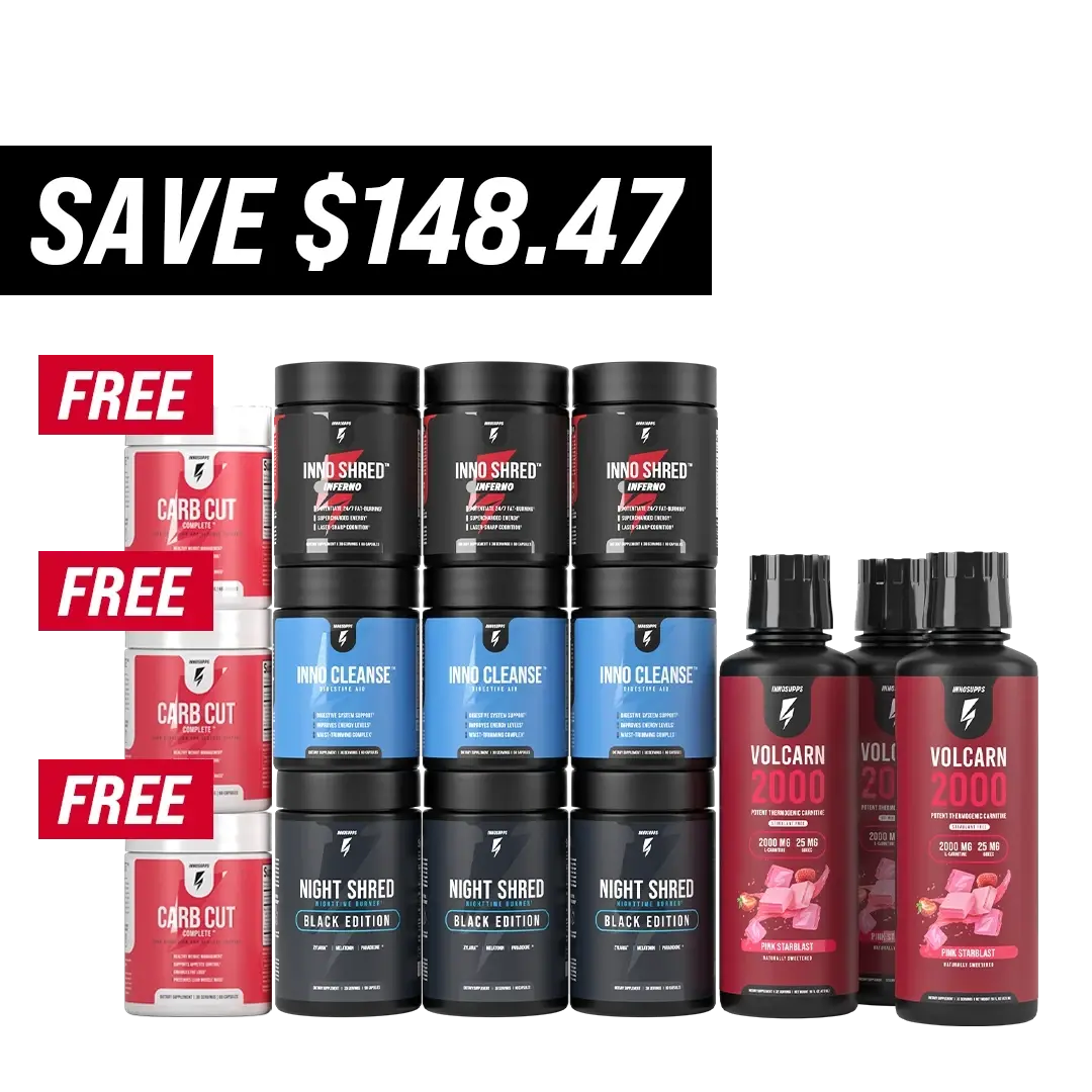 Supercharge your cognition and ignite your mental drive by harnessing the synergy of Volcarn 2000 & Inno Shred Inferno. Fuel your day with sustained energy, laser sharp focus and unparalleled mental clarity – all without the jitters or mid-day slumps.*