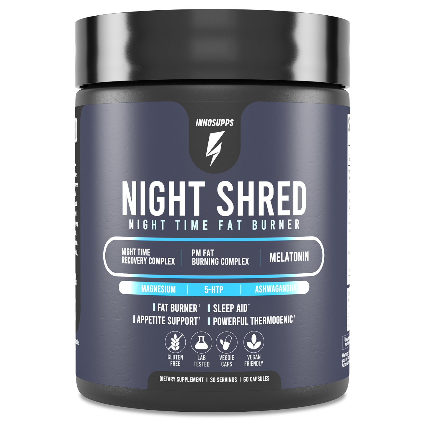 Night Shred allows you to ​wake up refreshed and energized​, ready for the day and to kill your workout. Night Shred supports high quality sleep with the combination of magnesium, melatonin, GABA and several other natural ingredients while simultaneously maximizing fat-burning with the much-studied CLA and L-Carnitine.