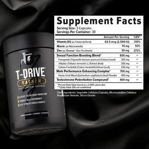 How do I take T-Drive™ Magnum? We recommend taking 3 capsules of T-Drive™ Magnum daily at any time of day, with or without food.* -