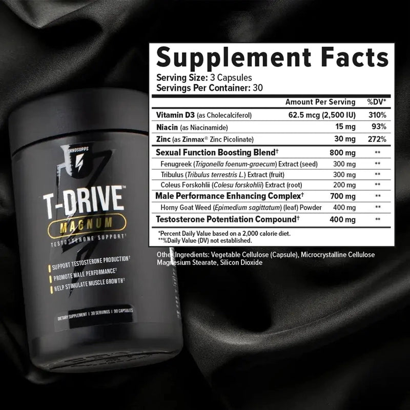Is T-Drive™ Magnum or Nitro Wood™ Magnum safe for me to take? T-Drive™ Magnum is packed with natural ingredients. Unlike prescriptions or other therapies, T-Drive™ Magnum works by firing up your body's own testosterone and vital hormones from the inside. However, it is always essential to discuss starting a new supplement regime with your healthcare professional.* -