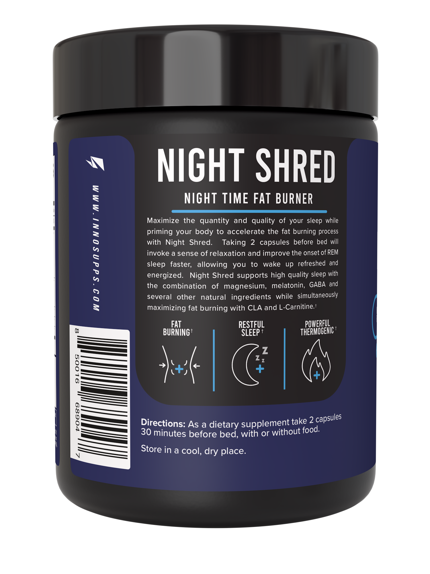 Night Shred allows you to ​wake up refreshed, energized​, and ready for the day. Night Shred supports high quality sleep with the combination of magnesium, melatonin, GABA and several other natural ingredients while simultaneously maximizing fat-burning with the much-studied CLA and L-Carnitine.
