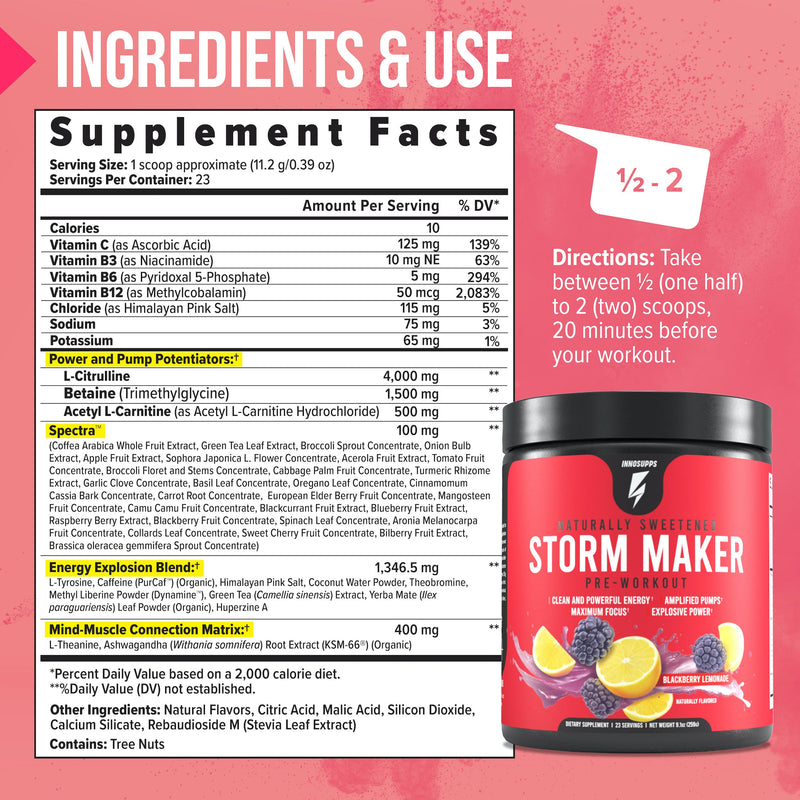 1 serving gives me an entirely new level of intensity! Storm Maker gives me powerful, but still clean energy and is my new favorite pre-workout!*Connor Stevens