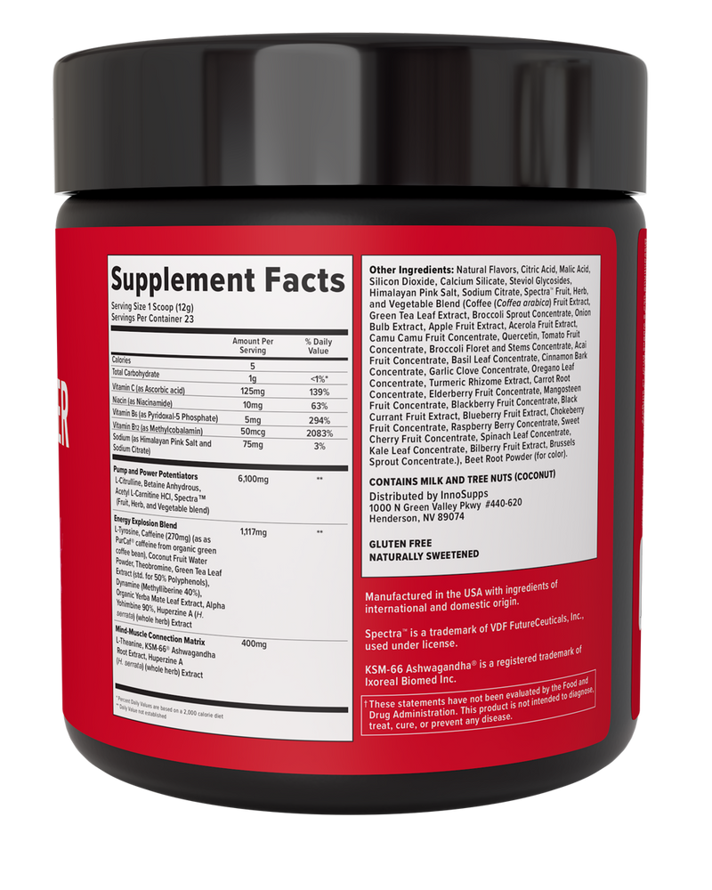 - Intensify Mental Drive* Skyrocket energy, heighten awareness and ignite the drive to attack your workouts with explosive performance!*