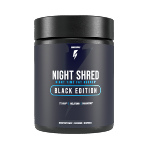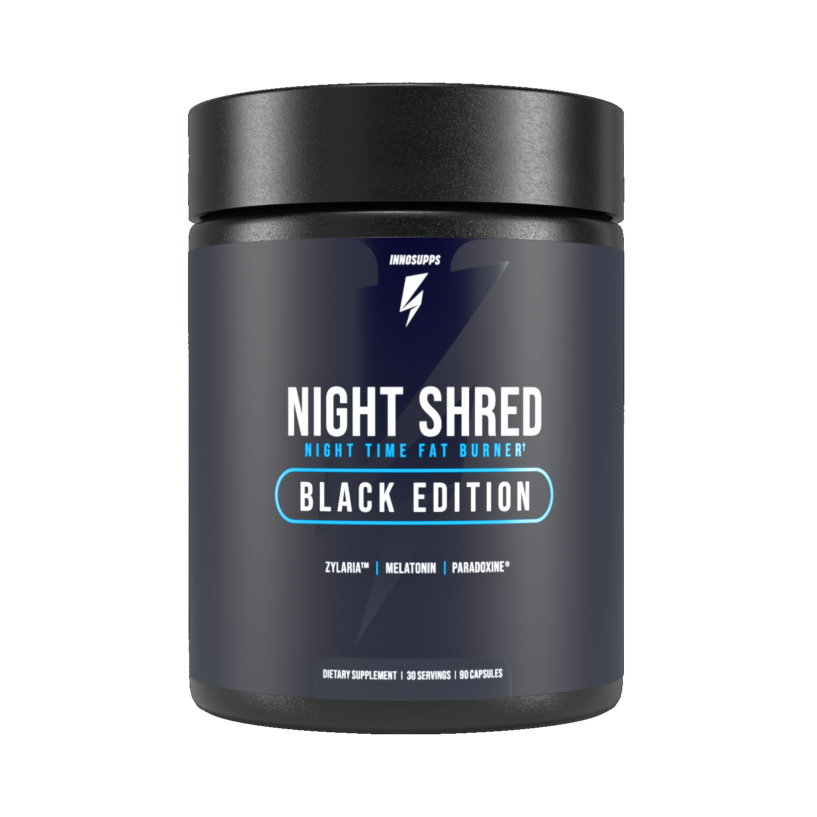 NIGHT SHRED BLACK How do I take Night Shred Black? Take 3 capsules 30 minutes before bedtime. You can take it with or without food, whichever your stomach prefers.* I tried the original Night Shred™ and it kept me up at night. How is this one different? Though ashwagandha helps many de-stress and feel relaxed, every individual is unique, and some don’t react well to it. That’s why we’ve replaced ashwagandha with the cutting-edge ingredient Zylaria in Night Shred Black to ensure we can give everyone the change to feel pure bliss and relaxation before bed. This version also contains melatonin to help you fall asleep faster and stay asleep longer, plus valerian root and passionflower to help you relax.* Does Night Shred Black have the same fat-burning ingredients? It sure does! This complex contains potent, highly-studied ingredients CLA, L-carnitine and grains of paradise that help minimize nighttime cravings and rev up the metabolism to help speed up the fat-burning process.*