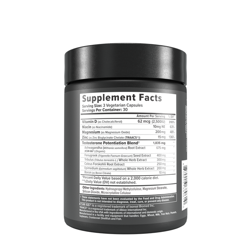 - Magnesium supports cardiovascular health and promotes natural testosterone production.*
