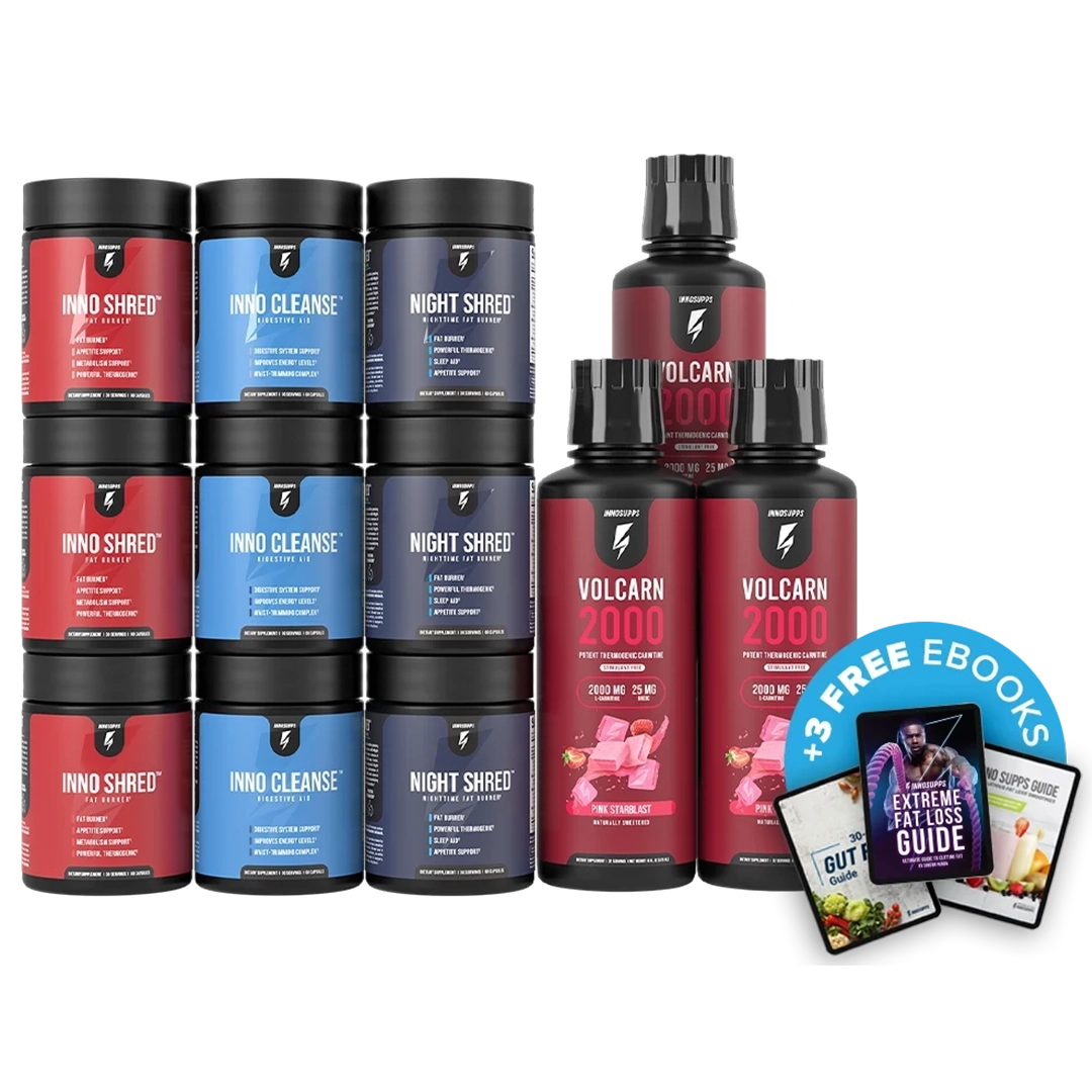 You don’t have to take each product, however we do recommend this stack because it supports fat-burning in different ways, but stacking them you’ll maximize results. Inno Shred™ and Volcarn 2000 fuel thermogenesis and metabolism, Night Shred™ optimizes fat-burning while you sleep, and Inno Cleanse™ helps eliminate waste and combats occasional bloating for a leaner look.*