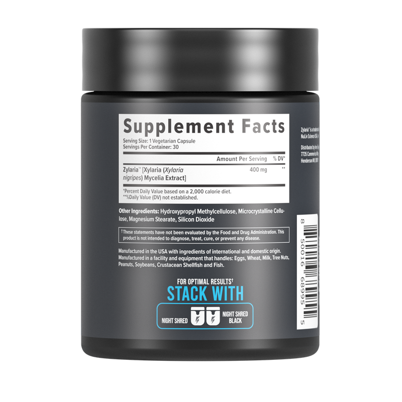 Night Shred Black is our top-selling sleep aid and fat-burner. Night Shred Black has ingredients, including Zylaria and Melatonin, to help you achieve relaxation before bed and reach the deepest sleep imaginable. Night Shred Black also has ingredients to help boost your metabolism and burn fat while you sleep. Zylaria, on the other hand, is a sleep aid that stimulates the brain to produce GABA, a neurotransmitter responsible for mental calmness.†*